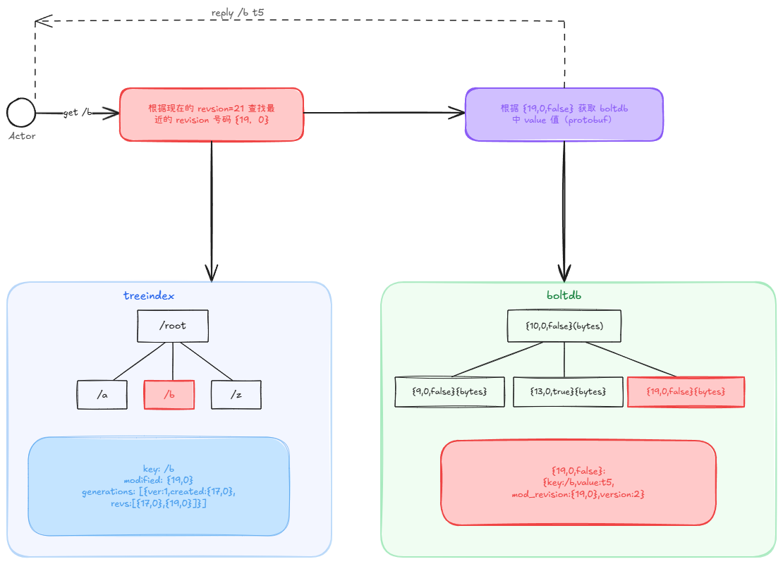 etcdctl get /b命令获取数据 - etcd 通过 treeindex 获取 key 的 revision 信息